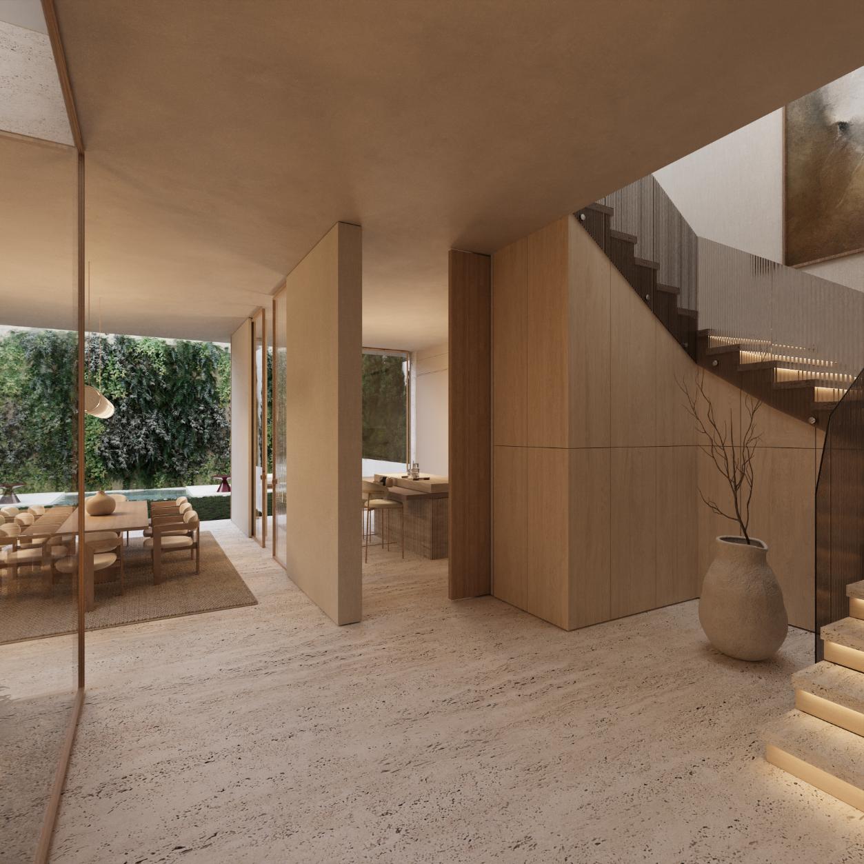 El proyecto, desarrollado junto al estudio de arquitectura Dsaenz Studio, combina una arquitectura contemporánea con soluciones técnicas orientadas al confort y la eficiencia. Se ha diseñado una distribución accesible y preparada para futuras necesidades, dejando prevista la instalación de un ascensor, y se ha apostado por sistemas energéticos de alta eficiencia, como suelo radiante con aerotermia, optimización del consumo de agua y una envolvente térmica por encima de los estándares normativos. La vivienda se completa con un patio trasero con piscina, configurando un hogar moderno, eficiente y pensado para el largo plazo.
